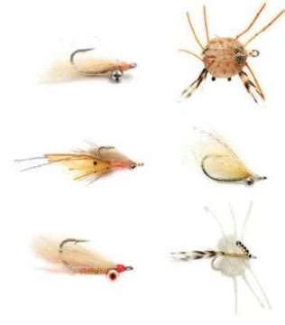 The Fulling Mill Tropics Selection is ideal when you are hunting Bonefish. This selection has been hand picked to give you every chance of success, all tied on premium saltwater hooks. Each pack contains 2 of each of the following patterns, B/Fish Gotcha Shallow Tan S6 Flexo Sand S6 Mink Shrimp Pink S4 Crazy Charlie Shallow Tan S6 Xmas Island Special Pink S6 Grand Slam S4.
